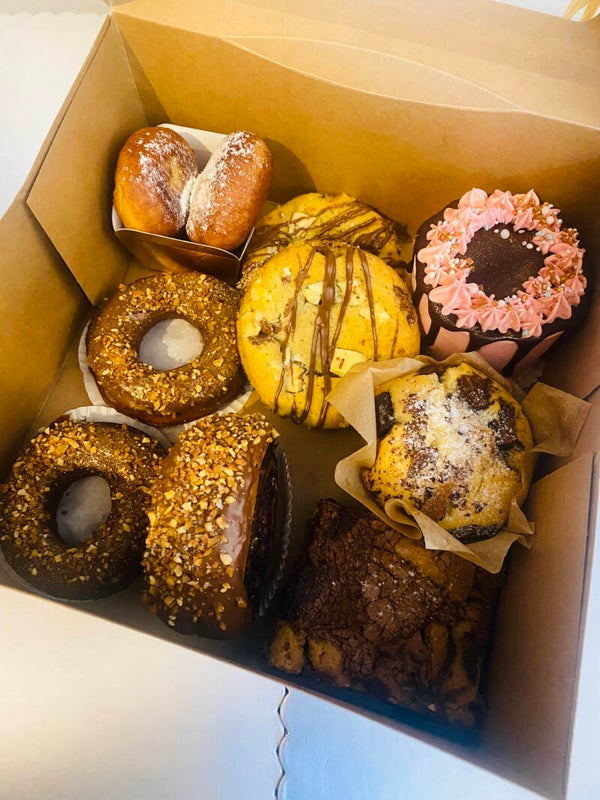 Comprenant: mini layer à partager ou pas, rollin, cookies xxl, browkie ultra moelleux, donut, beignets fourées, muffin fondant ... Les box peuvent varier toutes les semaines.